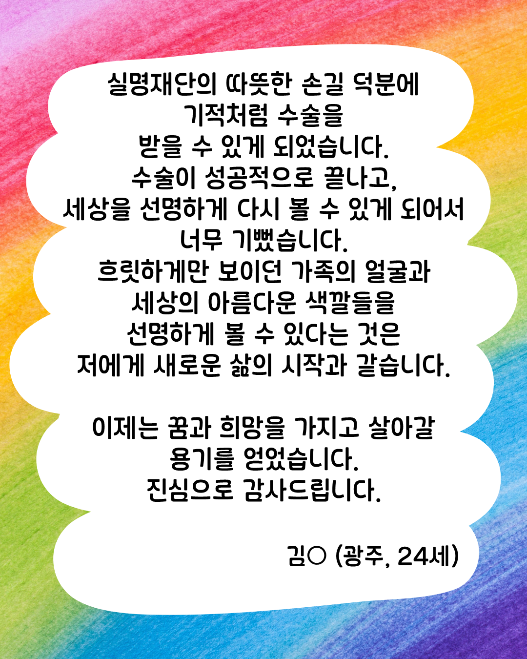 세상을 다시 선명하게 볼 수 있게 되어 기쁩니다.